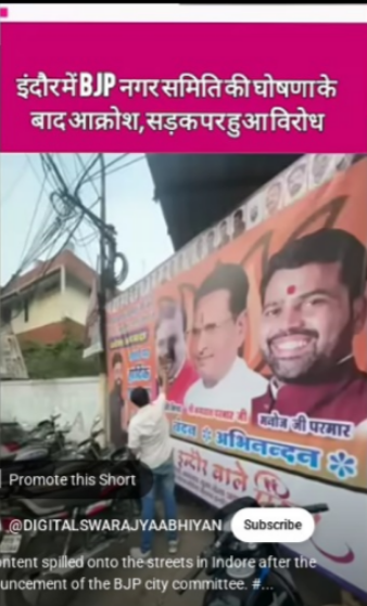 इंदौर में BJP नगर समिति की घोषणा के बाद असंतोष सड़क पर पहुँचा।