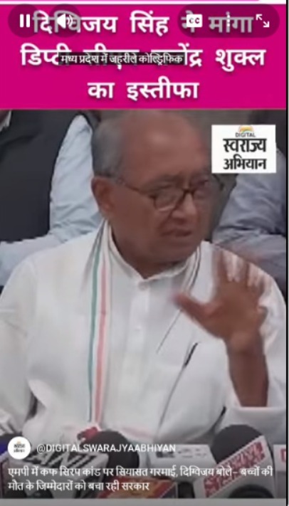 एमपी में कफ सिरप कांड पर सियासत गरमाई, दिग्विजय बोले– बच्चों की मौत के जिम्मेदारों को बचा रही सरकार